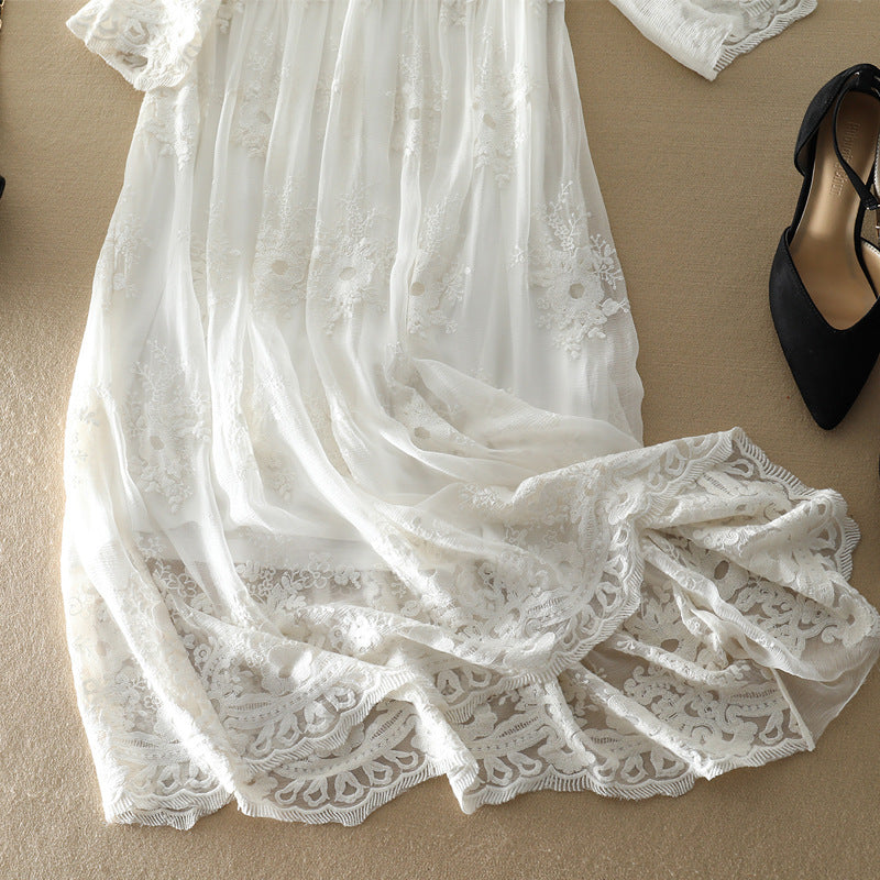 Designed with a flattering high waist, this dress accentuates your curves and creates a timeless, feminine silhouette. The prominent embroidery detailing adds a touch of bohemian flair, embracing the latest fashion trends seamlessly.