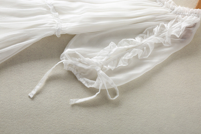 Available in classic white and delicate lotus pink colors, this dress comes in sizes S, M, L, and XL to ensure a perfect fit for every body shape. The inner lining is made of modal, providing additional comfort and enhancing the overall wearing experience.